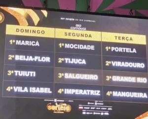 Sorteio define ordem das escolas de samba no carnaval 2027