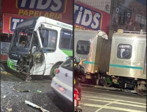 Colisão entre trem e ônibus paralisa ramal Belford Roxo na Baixada